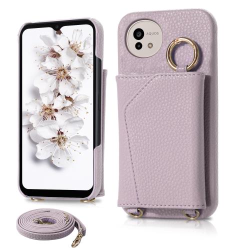 AQUOS wish4 ケース 手帳型 女性 おしゃれ ウィッシュ4 SH-52E スマートケース 軽量薄型 シンプル A402SH 携帯ケース 韓国 肩掛け 斜めがけ ストラップ アクオス ウィッシュ 4 カバー 背面カードポケット 耐衝撃 Wish 4 6.6 インチ 対応 スマホカバー ミラー 化粧鏡付き 横置き タッチペンプレゼント (紫, AQUOS wish4)