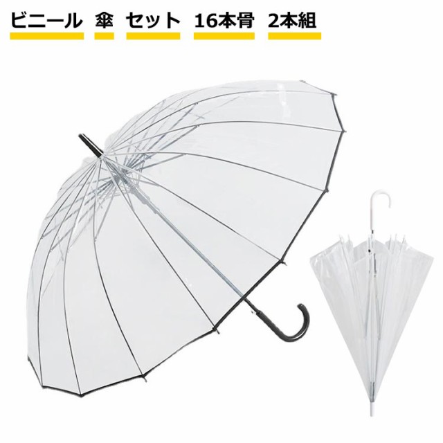 ビニール傘 ビニール 傘 セット 16本骨 2本組 風に強い 丈夫 頑丈 グラスファイバー クリアー 透明 周囲が見えやすい 安全 16本骨 ジャンプ傘 かさ 雨傘 長傘 透明傘 透明 丈夫な傘 おしゃれ 送料無料