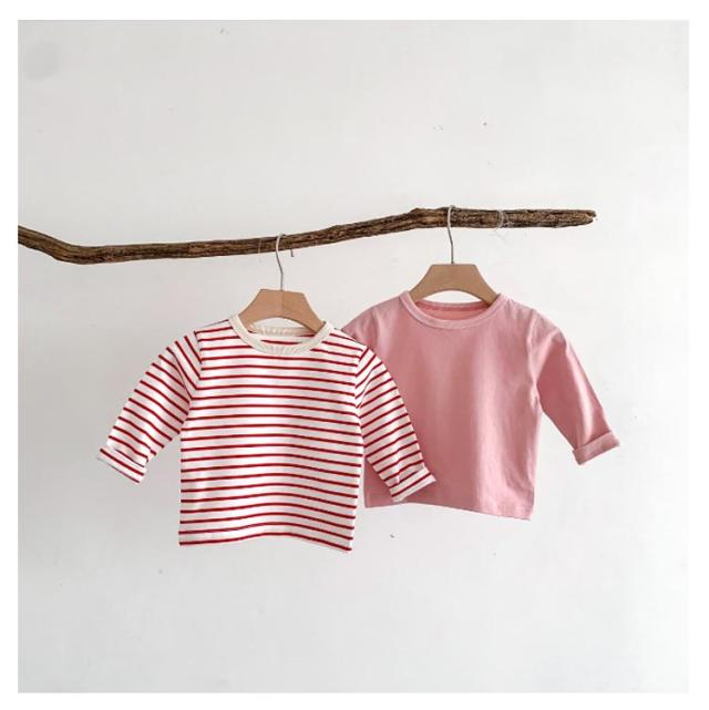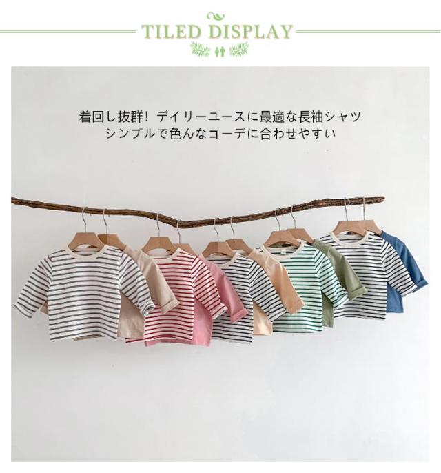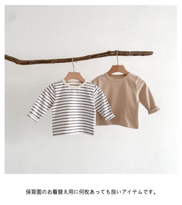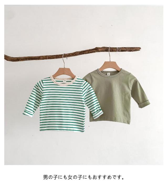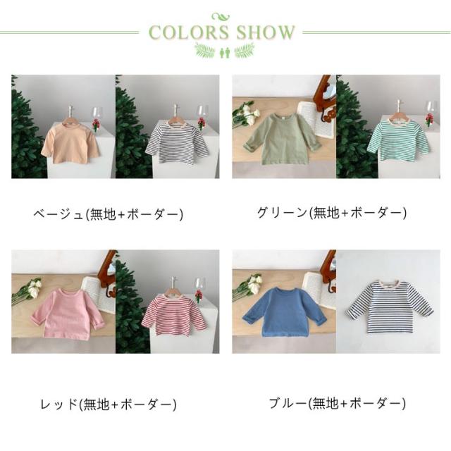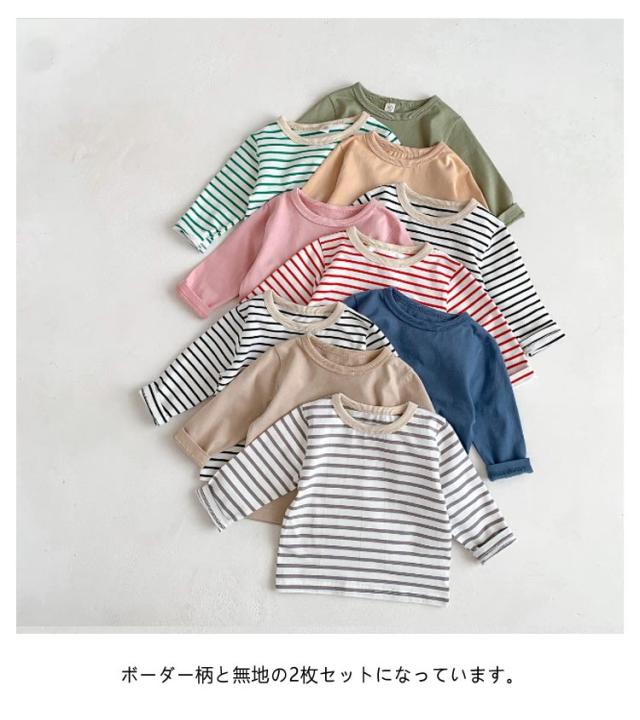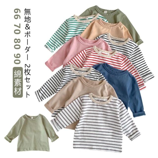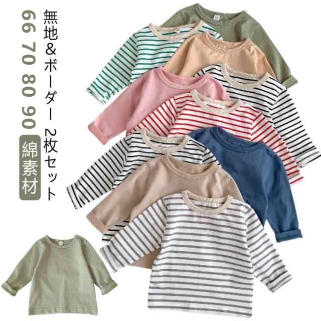 2枚セット 2枚セット ベビー 無地&ボーダー カットソー 子供服 キッズ 赤ちゃん 男の子 女の子 トップス ロンT カジュアル 長袖tシャツ 66 綿 80 90cm シンプル 70 保育園 幼稚園 お着替え用 ベビー服 コットン クルーネック