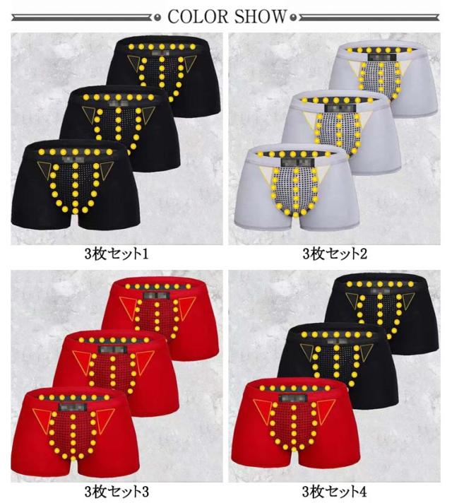 磁気パンツ 下着 48個付き バンブーパンツ 磁気パンツ ボクサーパンツ メンズ ボクサー ショーツ 増大パンツ 男性下着 メンズパンツ 3枚セット シニア 活力 アンダーウェア 抗菌防臭 柔らかい 誕生日 ギフト 吸水速乾 通気吸汗 春夏秋冬 送料無料