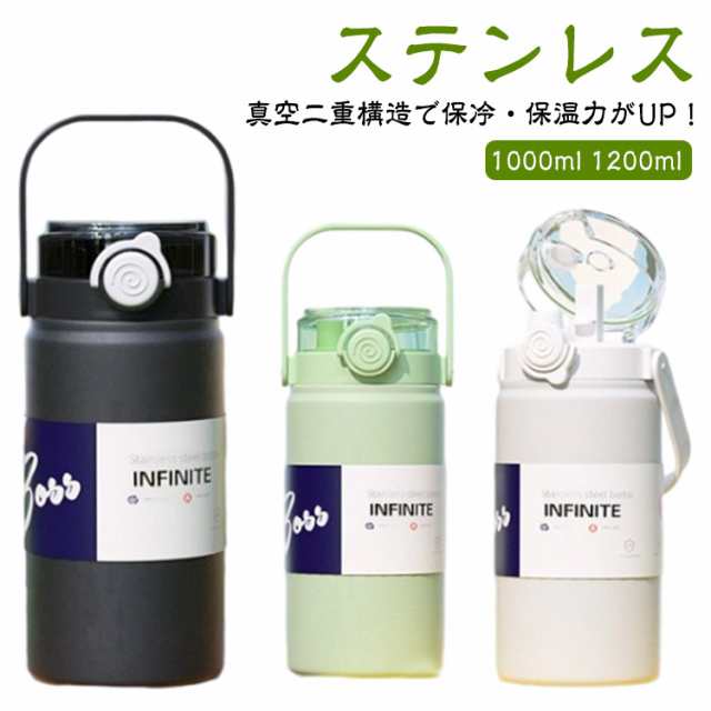 水筒 おしゃれ 真空断熱 保冷 スポーツジャグ 1.2L 保温 1L 大容量 携帯 ステンレスボトル 直飲み ストロー付き スポーツジャグ ハンドル付き 洗いやすい 軽量 魔法瓶 マグボトル 大人 キッズ 子供 スポーツ アウトドア キャンプ