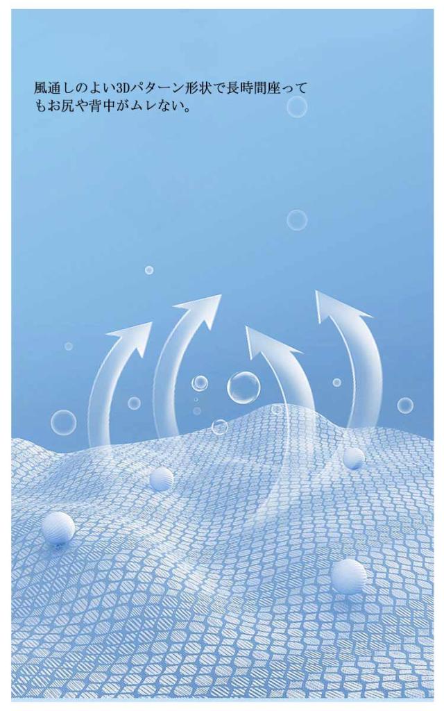 | 座るだけマッサージできる♪寒いほど涼しいシートクッション。暑い夏でも快適なドライブ♪ 風通しのよい3Dパターン形状で長時間座ってもお尻や背中がムレない。 体にフィットし、お尻や腰の負担を軽減しながら、長時間の運転時も快適に過ごせます 汚れても簡単に水洗いができるので常に清潔に♪ 車シート用だけでなく、アウトドア、デスクワークや在宅勤務などもおすすめです。 | |
