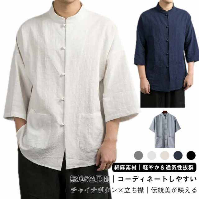 立ち襟 チャイナボタン 七分袖 メンズ メンズシャツ 綿麻 チャイナシャツ メンズシャツ カジュアルシャツ シャツ トップス ナチュラル 中華風 M?5XL