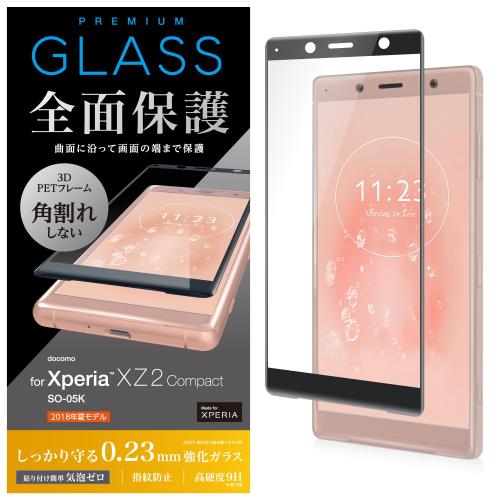 エレコム Xperia XZ2 Compact/フルカバーガラスフィルム/フレーム付/ブラック