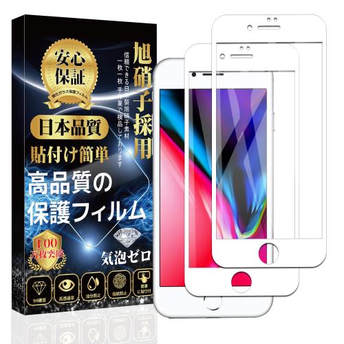 iPhone8/iPhone7 ガラスフィルム 全面保護フィルム(ホワイト)[9H硬度 指紋防止 気泡防止 飛散防止 貼り付け簡単 ] iPhone8/iPhone7 液晶強化ガラス2枚セット