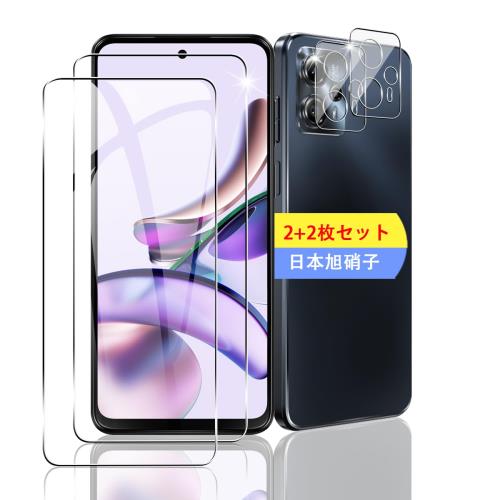 2+2枚セット 対応 Moto G13 ガラスフィルム スマホ 保護フィルム (2枚) + 用 Motorola Moto G13 レンズ保護フィルム (2枚) 日本製素材旭硝子製 用 Moto G13 フィルム ・