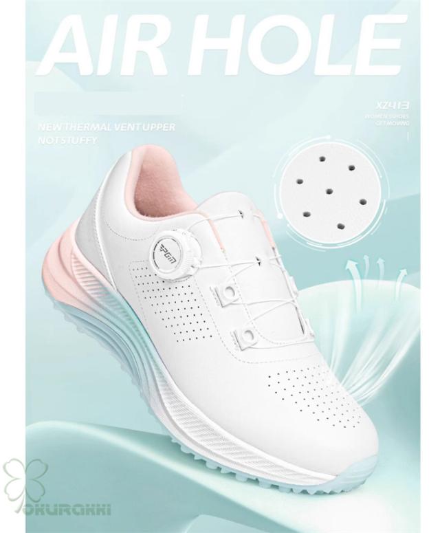 ゴルフ ゴルフシューズ 夏用 快適 通気 ダイヤル式 ソフトスパイク レディース スパイクシューズ スニーカー 靴 女子 防水 人工皮革