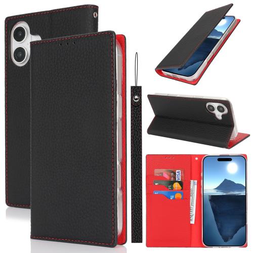 レザー iPhone 16 Plusケース 手帳型 アイフォン16 Plus スマホケース 本革 iPhone 16 Plus 携帯カバー アイフォン16 Plus本革 Jaorty 内蔵マグネットカードホルダ付き スタンド機能 人気-ブラック