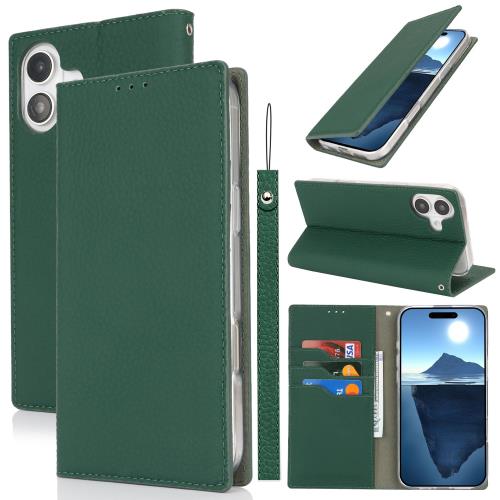 レザー iPhone 16 Plusケース 手帳型 アイフォン16 Plus スマホケース 本革 iPhone 16 Plus 携帯カバー アイフォン16 Plus本革 Jaorty 内蔵マグネットカードホルダ付き スタンド機能 人気-ダークグリーン