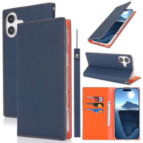 レザー iPhone 16 Plusケース 手帳型 アイフォン16 Plus スマホケース 本革 iPhone 16 Plus 携帯カバー アイフォン16 Plus本革 Jaorty 内蔵マグネットカードホルダ付き スタンド機能 人気-ネイビー