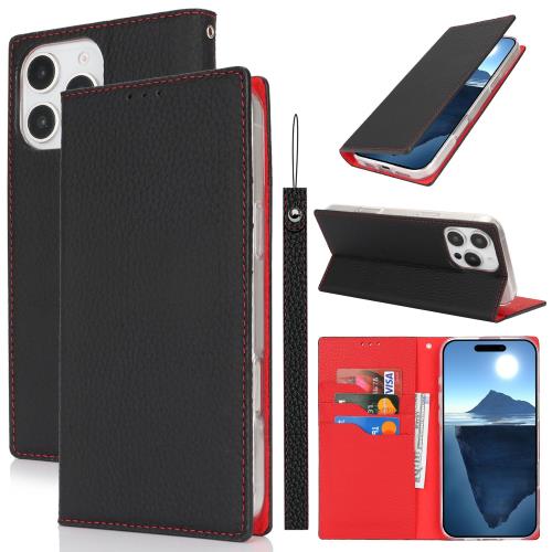 レザー iPhone 16 pro Maxケース 手帳型 iPhone 16 pro Max手帳型ケース アイフォン16 pro Max カバー iPhone 16 pro Max 手帳型ケース本革 Jaorty 内蔵マグネットカードホルダ付き スタンド機能 人気-ブラック