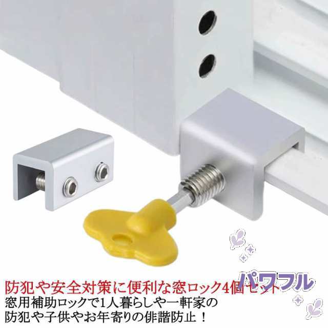 4個セット 鍵付き サッシ 窓用 補助錠 後付け 窓 網戸 ストッパー 網戸 ロック 網戸ストッパー 網戸ロック 網戸 あみ戸 ストッパー 補助ロック ベビーロック チャイルドロック ウインドロック ドア鍵 かぎ カギ 防犯グッズ 防犯 指はさみ防止 いたずら防止 転落防止 商品説明 防犯や安全対策に便利な窓ロック4個セット。窓用補助ロックで1人暮らしや一軒家の防犯や子供やお年寄りの俳諧防止!単身世帯や一軒家の防犯や子供やお年寄りの俳諧防止に役立つ鍵付きの窓ストッパーです。4個セットなので複数の窓や窓の上下に取り付けることができます。窓レールに設置し、窓サッシを開かないように、一定の位置までしか開かないようにすることができます。二重施錠で防犯対策として、また、小さなお子さまのいるお宅の安全対策としてもおすすめです。普段の防犯だけでなく、長期外出時や、認知症の方がいるご家庭の徘徊対策にも最適です。少し開けた状態でもサッシ窓を固定できるので、寝室、浴室、台所、トイレ等の換気用としても便利です。自動で閉まるタイプの窓はストッパーとしても活躍します。高品質なステンレス製で、丈夫で耐久性に優れています部屋に馴染みやすいシンプルなデザインにより、インテリアにこだわりのある方にもぴったりな一品です。 サイズ4個セットサイズについての説明サイズ:ロック調整距離:16mm