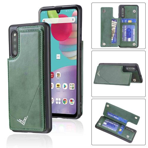 Anrek新型 SAMSUNG Galaxy A41 / docomo SC-41A / au SCV48 用 背面 カードケース 手帳型 ランヤード付 背面カバー (ダルグリーン) ドコモsc41a scv48 サムスン ギャラクシーa41 スマホケース サイドマグネット カード収納 横置き機能 PUレザー 財布型 携帯カバーgalaxy a41 GREEN