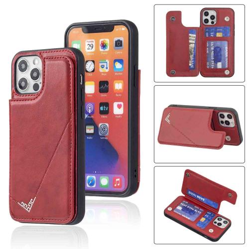 Anrek新型 APPLE iPhone 12 PRO 6.1 inch (6.1インチ) 用 背面 カードケース 手帳型 ランヤード付 背面カバー (レッド) アップル アイフォン12プロ スマホケース サイドマグネット カード収納 横置き機能 PUレザー 財布型 携帯カバーiphone12pro RED