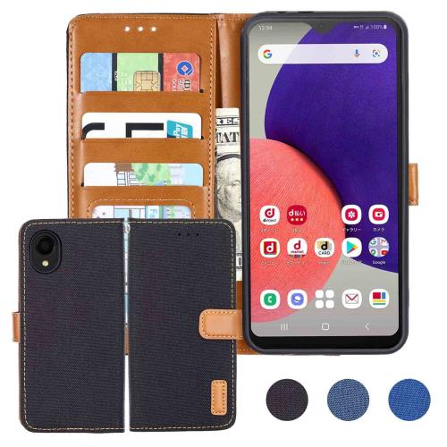 Anrek Galaxy A22 5G SC-56B docomo 対応 Samsung デニム材料 手帳ケース (ブラック) サムスン ドコモsc56b ギャラクシーa22 5g ケース カバー 手帳型 カード収納 サイドマグネット スタンド機能付き スマホケース 財布型 耐衝撃 耐摩擦 保護ケースA22 5G BLACK