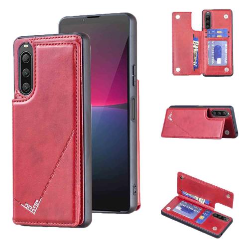 Anrek新型 SONY Xperia10V/SO-52D/SOG11/A302SO/XQ-DC44 用 背面 カードケース 手帳型 ランヤード付 背面カバー (レッド) ソニー エクスペリア10v スマホケース サイドマグネット カード収納 横置き機能 PUレザー 財布型 携帯カバー ソニーxperia10v RED