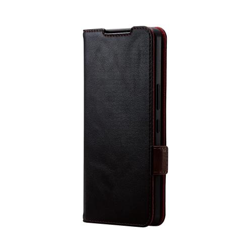 エレコム AQUOS R7 (SH-52C) ケース カバー 手帳型 レザー 耐衝撃 マグネット付きフラップ ステッチ ストラップホール付 ブラック PM-S222PLFYBK