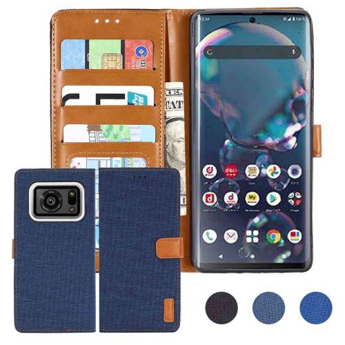 Anrek AQUOS R6 / docomo SH-51B softbank 対応 SHARP デニム材料 手帳ケース (ダークブルー) シャープR6 ドコモsh51b ソフトバンク アクオスr6 ケース カバー 手帳型 カード収納 サイドマグネット スタンド機能付き スマホケース 財布型 耐衝撃 耐摩擦 保護ケースR6 BLUE