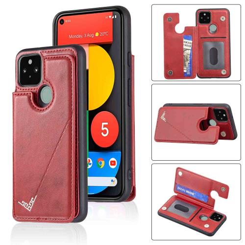 Anrek新型 GOOGLE Pixel 5a (5G) SoftBank 用 背面 カードケース 手帳型 ランヤード付 背面カバー (レッド) グーグル ピクセル5a 5g pixel5a スマホケース サイドマグネット カード収納 横置き機能 PUレザー 財布型 携帯カバーpixel5a 5g RED