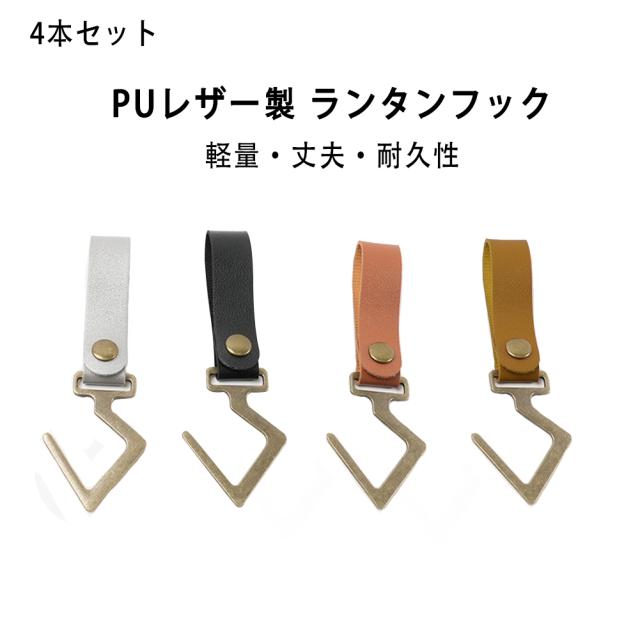 PUレザー製 ランタンフック 4本セット 金属 フック キャンプ アウトドア ハンガー 吊り下げ S字フック ライト 調理器具 キッチン 野外 収納 整理 テントポールフック ランタンハンガー 多機能 ランタンスタンド 組み立て簡単 ハンギングラック