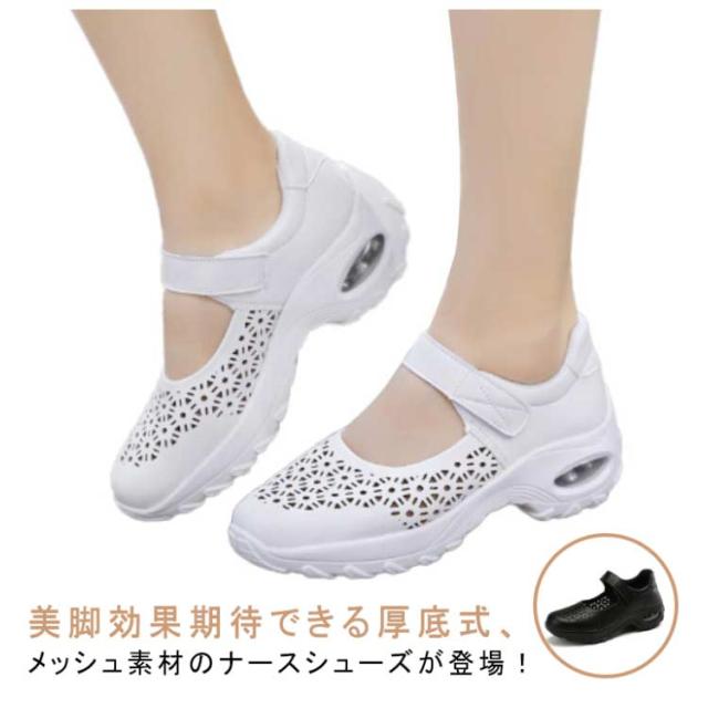 | 美脚効果期待できる厚底式、メッシュ素材のナースシューズが登場! アッパーはメッシュデザイン、通気性に優れた。 インソールも軟らかくて、履いたその日から足になじみやすくなっています。 アウトソールは耐摩耗性に優れたラバーを採用して、付着力が強くて滑りにくく、クッション性も強化し、地面との反発力を高め、グリップ性が向上し、お年寄りは安心して履けます。 看護師さんはもちろん、介護士、清掃、事務など室内でのお仕事におすすめです。 マジックテープタイプなのでフィット感の微調整ができ、脱ぎ履きもスムーズに♪ シンプルかつカジュアルなデザインで、コーデしやすいため、普段使いはもちろん、トライブ、通勤、通学、ショッピングなど幅広くご利用いただけます。 | |