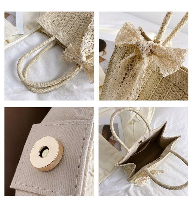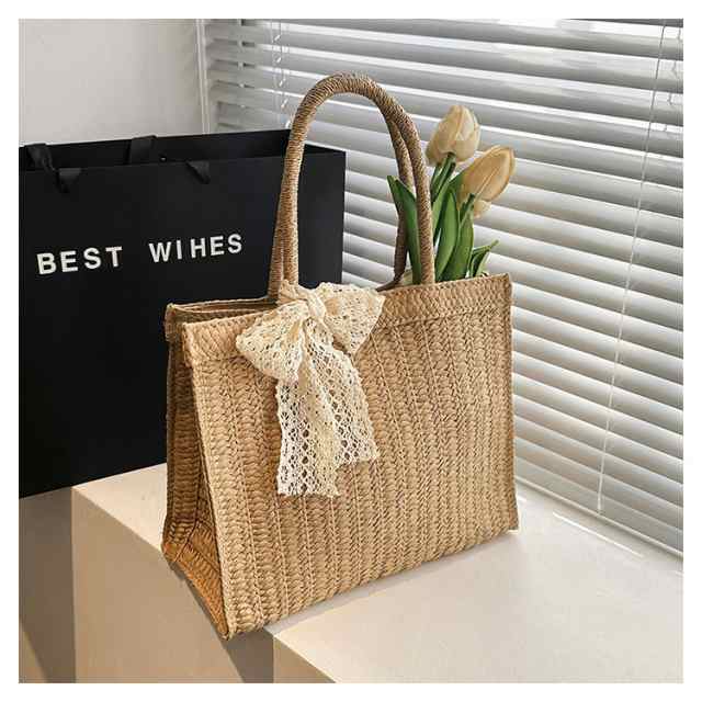 かごバッグ トートバッグ トート ミニトート 仕切り マチ付き 収納 大容量 小さい ミニ スクエア パステル ペーパー 雑材 夏