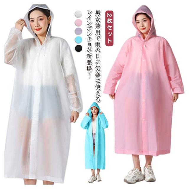 男女兼用 撥水 自転車 おしゃれ 大人用 軽量 厚手 レインコート 袖口ゴム 2枚セット レディース ワークマン 防水 通学 前開き 通勤 お迎え 2枚セット かわいい レインウェア ロング レインポンチョ 雨具 カッパ かっぱ