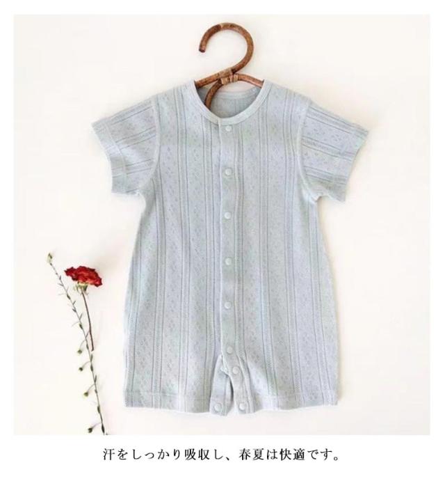 ロンパース 前開き 半袖 女の子 夏 コットン 男の子 新生児 通気 全開き 子供服 かわいい ボディスーツ 薄手 ベビー服 メッシュ キッズ服 パジャマ ナイトウェア 赤ちゃん 幼児 肌着 春服 夏服 出産祝い カバーオール 59 66 73 80 90