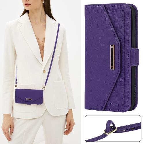 Cavor iPhone14 手帳型スマホケース肩掛け 首かけ 斜めがけ ショルダー ケース鏡付きiPhone14 財布型ケースiPhone14 スマホケース ショルダー カード収納マルチパスケースiPhone14 携帯 カバー iPhone14 case 適用 スタンド機能 mirror 可愛い 女性 落下防止落下保護 Qi急速充電対応パープル