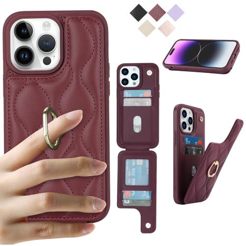 Cavor iPhone 14 Pro 手帳型ケース 背面ポケット付き iPhone 14 Pro 財布型 ケース アイホン14 Pro スマホケースカードポケット上下開iPhone 14 Pro 携帯ケース薄型 iPhone 14 Pro case カード収納 360°回転リング 可愛い 免許証と 横置 Qi急速充電対応 磁気機能 落下防止- ワインレッド