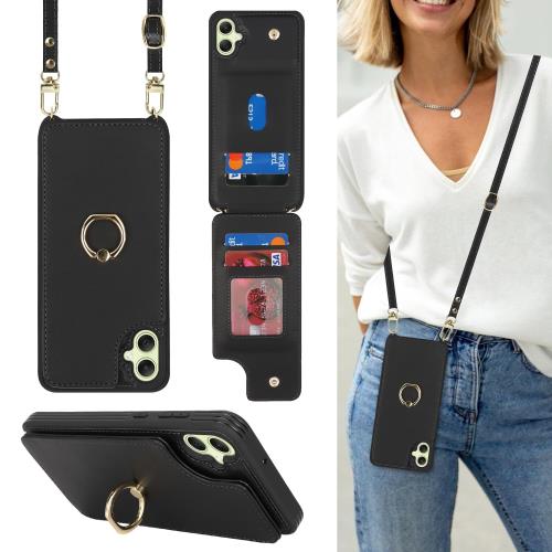 Cavor Galaxy A50S 手帳型ケースGalaxy A50S スマホケースショルダークロスボディ肩掛け 首かけ 斜めがけ背面ポケット付きGalaxy A50S 財布型ケース上下開Galaxy A50S 携帯ケースショルダーRFID機能Galaxy A50S ケースカード収納 360°回転リング 横置磁気機能Qi急速充電対応-ブラック