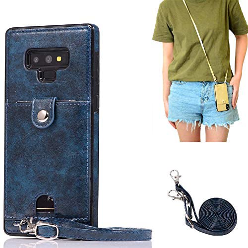 Samsung galaxy Note9 SC-01L SCV40 スマホ ケース 肩掛け 首かけ 斜めがけ ショルダー galaxy Note9縄掛け ケース PU レザー galaxy Note9カード収納 galaxy Note9手帳型 カバー SC-01L SCV40 カバー galaxy Note9 背面 手帳型 高級PUレザー galaxy Note9 財布型 Cavor SC-01L SCV40 携帯ストラップ付き Qi充電対応 背面ポケット付き 調整可能 紛失 落下防止 滑り止め 多機能 落下保護首かけ 斜めがけ-ブルー