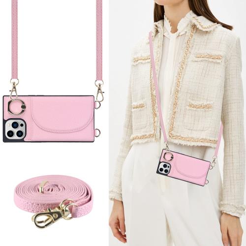 Cavor iPhone12 Pro Max手帳型ケースiPhone13 Pro Maxショルダー スマホケースiPhone12 Pro Maxスマホ 携帯ケース背面ポケット付き肩掛け 斜めがけショルダー クロスボディ肩掛け首かけ 斜めがけ クロスボディアイフォン13 Pro Maxケース カード収納左右開携帯ケース 財布型 横置 磁気機能-ピンク