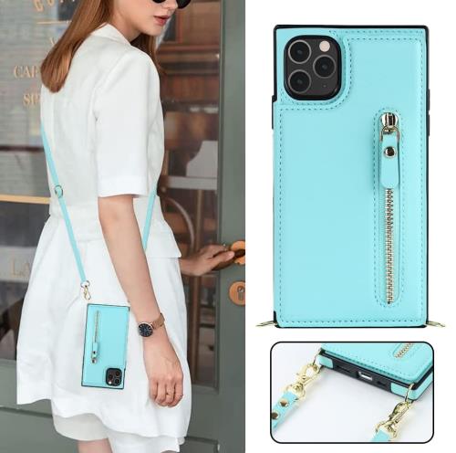 Cavor iPhone11 Pro Max スマホケース 肩掛け首かけ斜めがけスマホショルダーiPhone11 Pro Maxケース手帳型iPhone11Pro MaxスマホカバーRFID機能iPhone11 Pro Maxケースカード収納マグネットダブルデザイン携帯ケース横置付きの専属ストラップ同梱なので ファスナースタイル財布型 磁気機能- マネーブルー