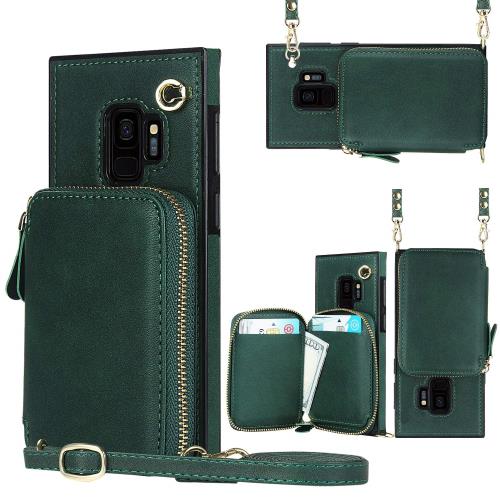 Galaxy S9 Plus SC-03K/SCV39 スマホ ケース 肩掛け 首かけ 斜めがけ ショルダー ケース 縄掛け Galaxy S9 Plus 手帳型 ケース SC-03K/SCV39 ケース 手帳型 Galaxy S9 Plus PUカバーRFID機能財布 ケース 上質PUレザー多財布デザインGalaxy S9 Plus SC-03K/SCV39 用き耐衝撃性RFID機能財布合一 付きの専属ストラップ同梱なので 強磁性 ファスナースタイル Galaxy S9 Plus 財布型 カバー おしゃれ 耐汚れ カード収納 磁気閉鎖 内蔵マグネット 衝撃吸収 取り外し可能 ICカードホルダー レンズ保護 - ダークグリーン