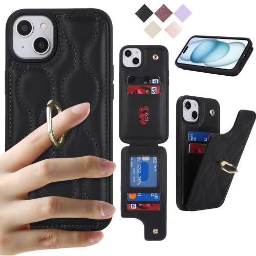 Cavor iPhone 15 Plus 手帳型ケース 背面ポケット付き iPhone 15 Plus 財布型 ケース アイホン15 Plus スマホケースカードポケット上下開iPhone 15 Plus 携帯ケース薄型 iPhone 15 Plus case カード収納 360°回転リング 可愛い 免許証と 横置 Qi急速充電対応 磁気機能 落下防止-ブラック