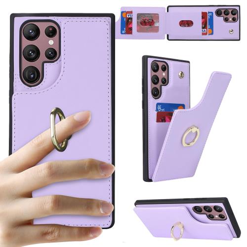 Cavor Galaxy S22 Ultra 5G SC-52C SCG14 ケース 背面ポケット付きGalaxy S22 Ultra手帳型ケース カードケースカードポケット 上下開 RFID機能 Qi急速充電対応 Galaxy S22 Ultra 財布型ケース SC-52C スマホケースcase 360°回転リング 免許証と 可愛い 横置 カード収納-パープル