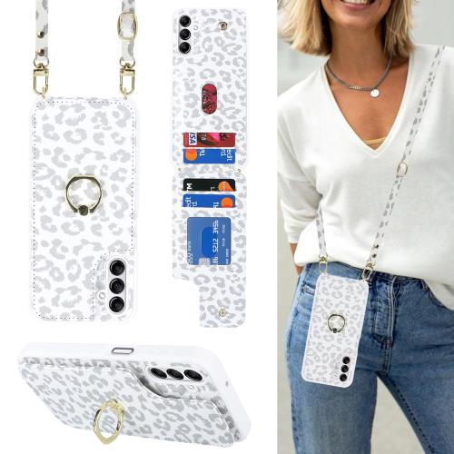 Cavor Galaxy A14 5G スマホケース ショルダー Galaxy A14 5G スマホ 携帯 用 ケース ショルダー クロスボディ 肩掛け 首かけ 斜めがけ ショルダー ケース 背面ポケット付き上下開Galaxy A14 5G 財布型ケースRFID機能Galaxy A14 5G case カード収納 360°回転リング 可愛い磁気機能-白ヒョウ柄
