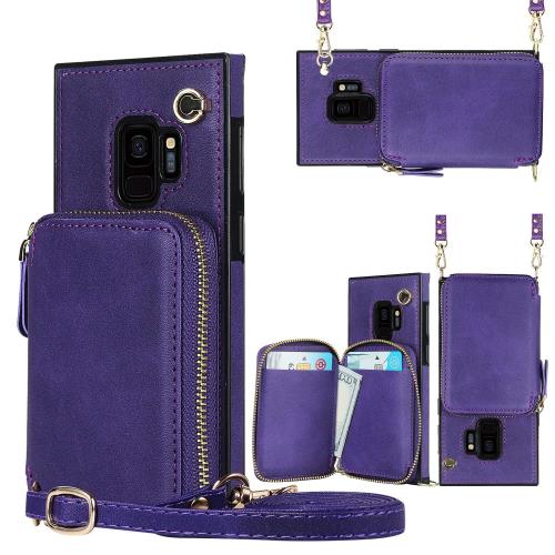 Galaxy S9 Plus SC-03K/SCV39 スマホ ケース 肩掛け 首かけ 斜めがけ ショルダー ケース 縄掛け Galaxy S9 Plus 手帳型 ケース SC-03K/SCV39 ケース 手帳型 Galaxy S9 Plus PUカバーRFID機能財布 ケース 上質PUレザー多財布デザインGalaxy S9 Plus SC-03K/SCV39 用き耐衝撃性RFID機能財布合一 付きの専属ストラップ同梱なので 強磁性 ファスナースタイル Galaxy S9 Plus 財布型 カバー おしゃれ 耐汚れ カード収納 磁気閉鎖 内蔵マグネット 衝撃吸収 取り外し可能 ICカードホルダー レンズ保護 - パープル