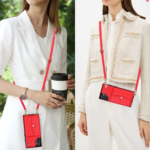 Galaxy Note 10 Pro/Galaxy Note10 Plus SC-01M/SCV45 スマホ ケース 肩掛け 首かけ 斜めがけ ショルダー ケース 縄掛け Galaxy Note 10 Pro 手帳型 ケース Galaxy Note 10 Plus ケース 手帳型 Galaxy Note 10 Pro ケース 手帳ケースRFID機能財布 ケース 手帳ケース CASE肩掛け手掛けGalaxy Note 10 Plus ケース 財布型 ショルダー クロスボディ付きの専属ストラップ同梱なのでファスナースタイル Galaxy Note 10 Pro 財布型 カバー おしゃれ 耐汚れ ストラップ付き ショルダーケース クロスボディケース カード入れ スマホケース 携帯カバー 取り外し可能 ICカードホルダー レンズ保護 - レッド