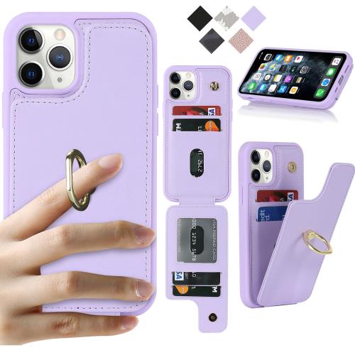 Cavor iPhone11 Pro Max手帳型ケース 背面ポケット付き カードポケット上下開iPhone11 Pro Max携帯ケースRFID機能軽量 薄型 落下防止iPhone11 Pro Max財布型ケース iPhone11 Pro Maxcase 360°回転リング 可愛い 横置 Qi急速充電対応 免許証と-パープル