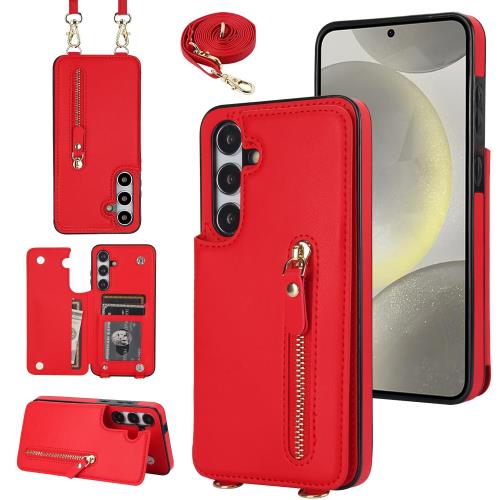 Cavor Galaxy S24 SC-51E SCG25スマホケース肩掛け首かけ 斜めがけ ショルダーGalaxy S24 ケース手帳型Galaxy S24 ショルダーケースカード収納RFID機能財布ケース上質PUレザーマグネットダブルデザインクロスボディ付きの専属ストラップ同梱なので ステント機能 ICカードホルダー-レッド