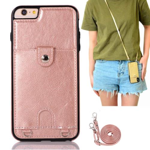 iPhone 7 Plus/iPhone 8 Plus スマホ ケース 肩掛け 首かけ 斜めがけ ショルダー iPhone 8 Plus 縄掛け ケース PU レザー iPhone 8 Plus カード収納 iPhone 8 手帳型 カバー iPhone 7 Plus カバー iPhone 7 Plus 背面 手帳型 高級PUレザー iPhone 7 Plus 財布型 Cavor 携帯ストラップ付き Qi充電対応 背面ポケット付き 調整可能 紛失 落下防止 滑り止め 多機能 落下保護首かけ 斜めがけ-ローズゴールド