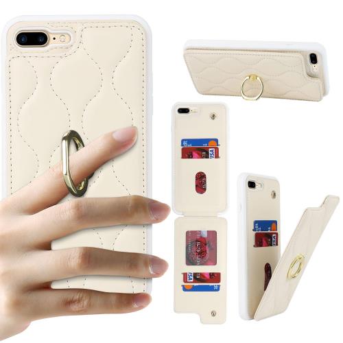 Cavor iPhone7 Plus iPhone8 Plus手帳型ケース 背面ポケット付きiPhone8 Plus 財布型 ケースiPhone7 Plus手帳型ケースアイホン8 Plusスマホケースカードポケット上下開iPhone7 Plus 携帯ケース case カード収納 360°回転リング 免許証と 横置 Qi急速充電対応 磁気機能- ホワイト