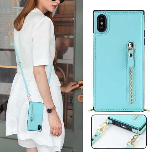 Cavor iPhoneXR スマホケース 肩掛け首かけ斜めがけスマホショルダーiPhoneXR ケース手帳型iPhone10RスマホカバーRFID機能iPhoneXR ケースカード収納マグネットダブルデザインiPhoneXRスマホ携帯ケース横置 付きの専属ストラップ同梱なので ファスナースタイル Qi急速充電 財布磁気機能- マネーブルー