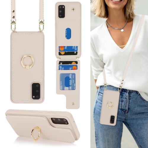 Cavor Galaxy S20 SC-51A SCG01 対応ケース 手帳型 Galaxy S20 スマホ 携帯 用 ケース ショルダー クロスボディ 肩掛け 首かけ 斜めがけ ショルダー ケース 背面ポケット付き上下開Galaxy S20 手帳型ケースRFID機能Galaxy S20 財布型case カード収納 360°回転リング 可愛い磁気機能-ホワイト