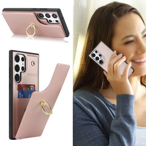 Cavor Galaxy S23 Ultra 5G SC-52D SCG20 ケース背面ポケット付き Galaxy S23 Ultra 5G手帳型ケースSCG20 ケースカードポケット上下開SC-52D 携帯ケースRFID機能Galaxy S23 Ultra 財布型ケース Galaxy S23 Ultra case 360°回転リング横置 免許証とQi急速充電対応-ピンク