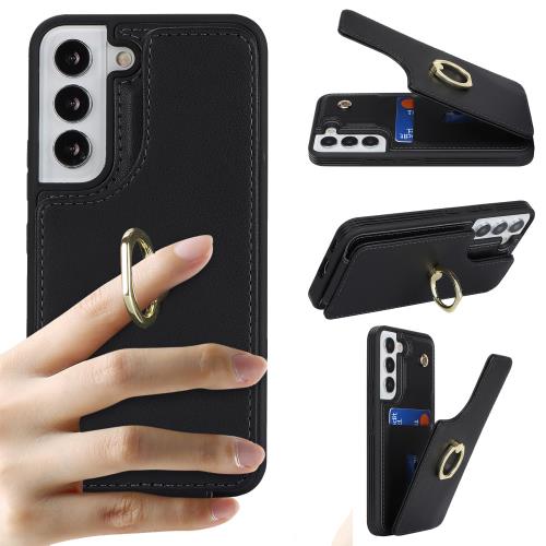 Cavor Galaxy S22 5G [SC-51C SCG13]ケース 背面ポケット付き Galaxy S22 5G 手帳型ケースSC-51C ケース カードポケット上下開折りたたみ SCG13 携帯ケース RFID機能Qi急速充電対応 Galaxy S22 5G 財布型ケース Galaxy S22 case 360°回転リング横置 磁気機能免許証と-ブラック
