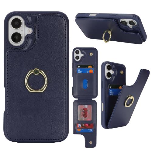 Cavor iPhone16 ケース 背面ポケット付き iPhone16 手帳型ケース カードポケット上下開アイフォン16 携帯ケースRFID機能薄型 落下防止 iPhone16 財布型ケースiPhone16 手帳スマホケース case 360°回転リング 可愛い横置 免許証と磁気機能 Qi急速充電対応-ブルー