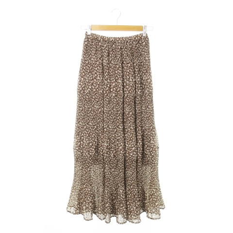 【中古】ナノユニバース nano universe プリーツスカート ロング シアー ウエストゴム 切替 総柄 花柄 36 S 茶